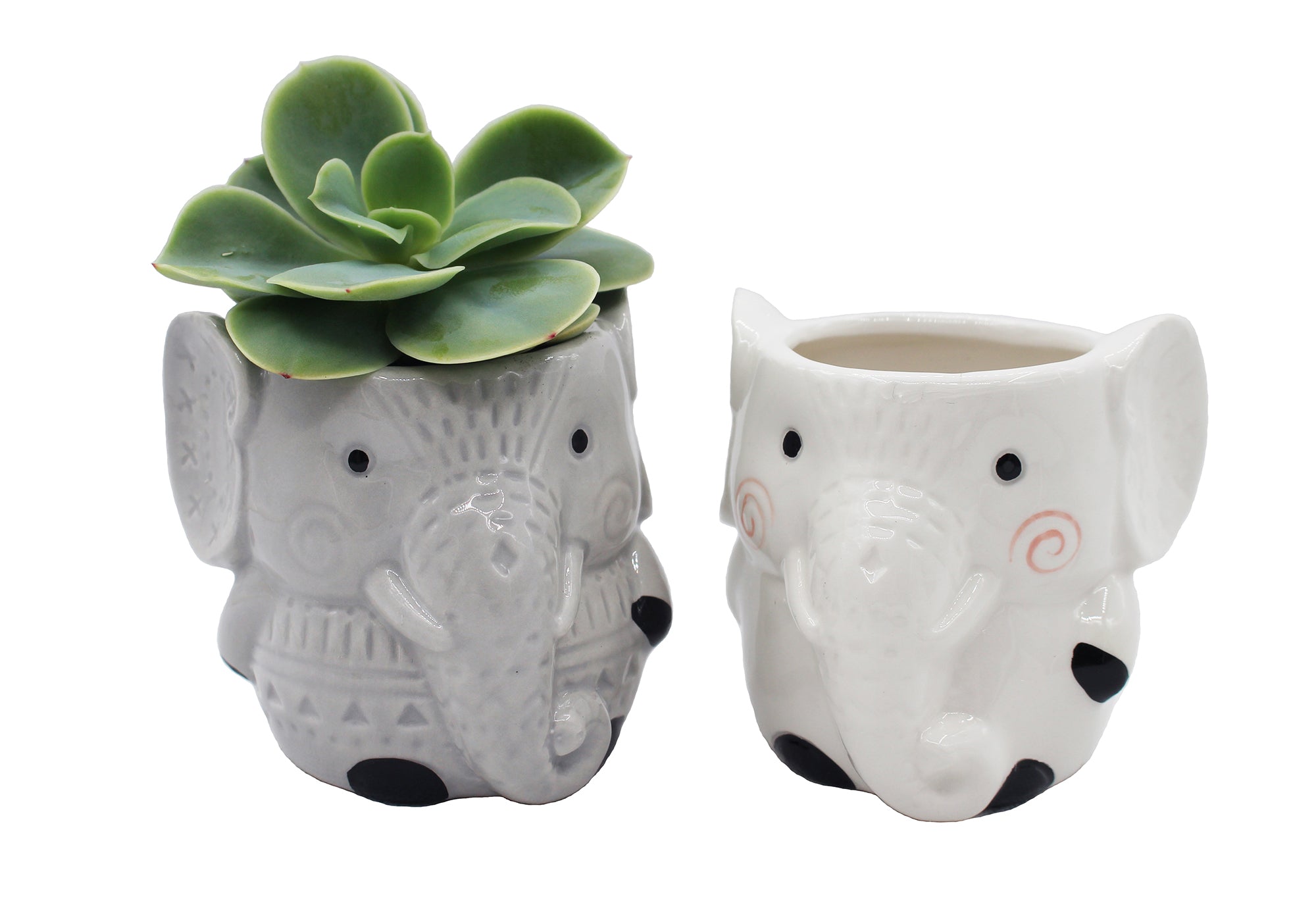 Elephant Succulent Planters 2 Pack Ceramic Flower Pots With Drainage H Cotta Planters